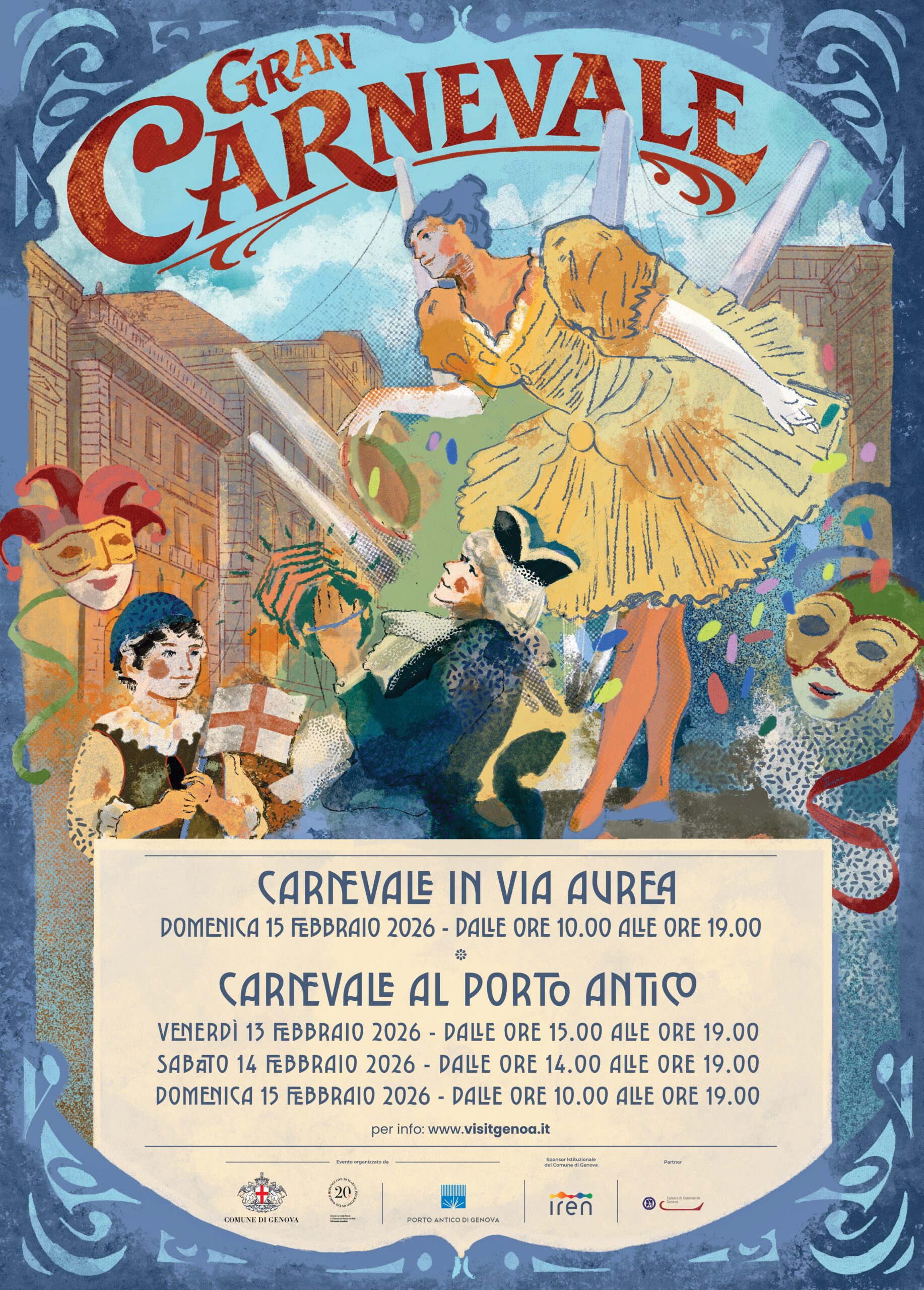 Un’intera giornata dedicata alle tradizioni, alla storia e all’identità culturale genovese, con la presenza delle maschere storiche genovesi Paciugo e Paciuga, simboli popolari del Carnevale ligure, che animeranno la via con colori, musica e spettacoli itineranti.